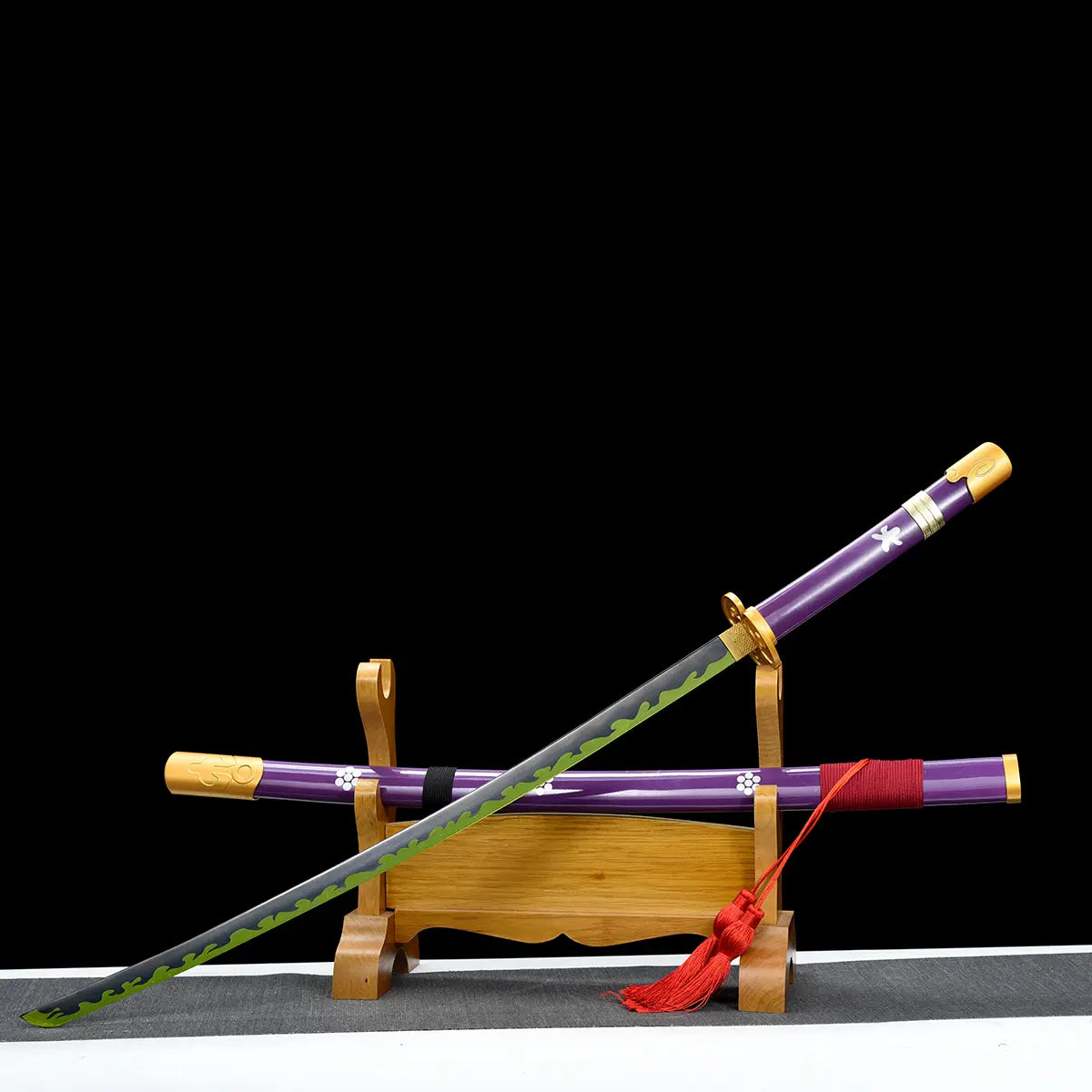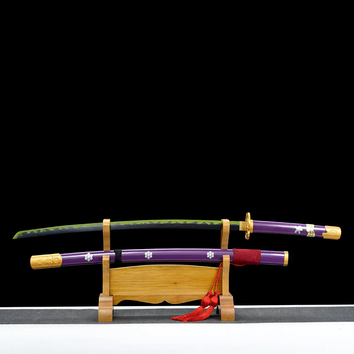Immerse yourself in the epic world of One Piece with the Enma Purple , Roronoa Zoro's legendary katana. Hand-forged from 1045 carbon steel, it embodies both visual fidelity to the source material and the power of a true Japanese blade. An exceptional piece that combines prestige, authenticity, and exclusivity, perfect for both wielding and collecting.
